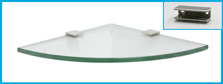 Glass Tops Direct WebsiteQuarter Round Shower Shelf with Square Clamps Features: Recommended weight capacity 40 LBS Shelf Clamps available in Brushed Nickel or Chrome fini...